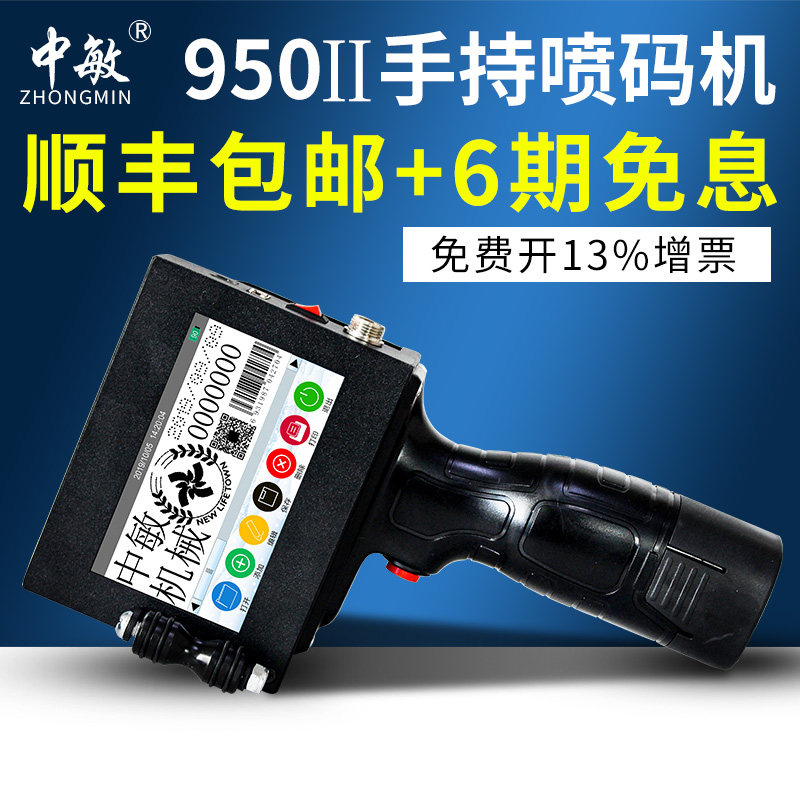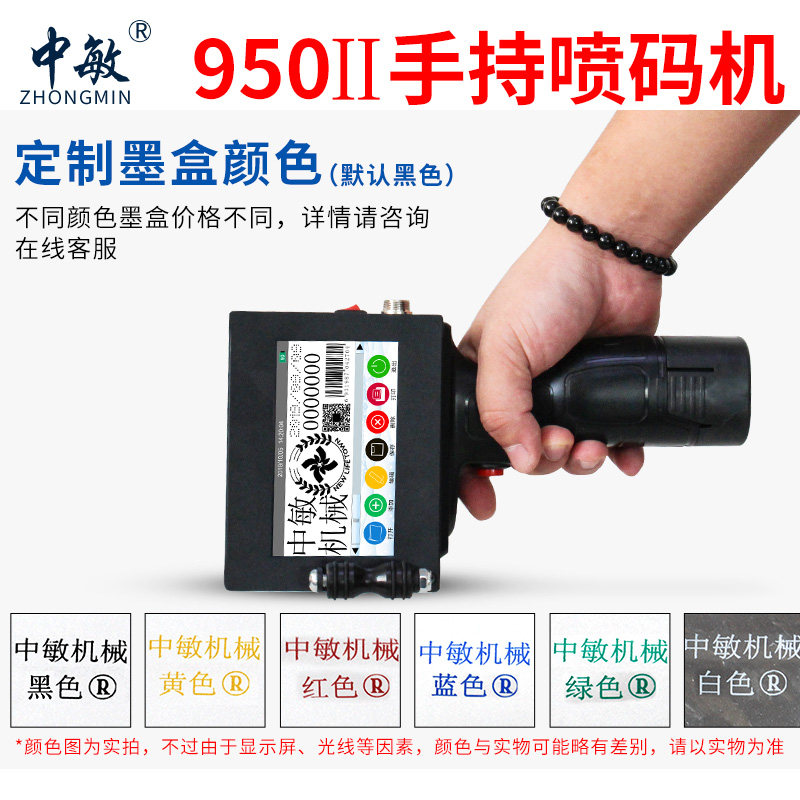 Zhongmin ZM-950II intelligent handheld inkjet printer small character 12.7mm food production date small automatic coding machine manual spray 2D code barcode assembly line labeling