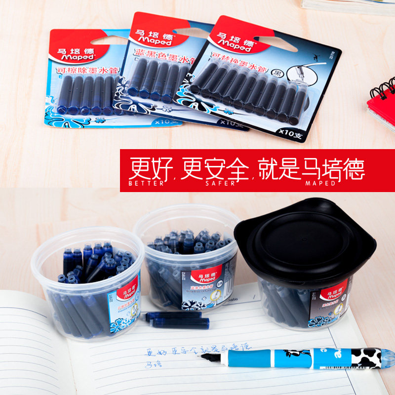 Maped fountain pen ink sac positive posture with replaceable ink sack erasable blue ink bile pure blue black blue black crystal blue 3 4mm caliber ink emboldened ink male third grade elementary school student