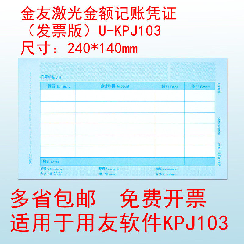 Suitable for user friend voucher paper KPJ103 Jinyou 240*140 financial laser amount accounting certificate U-KPJ103