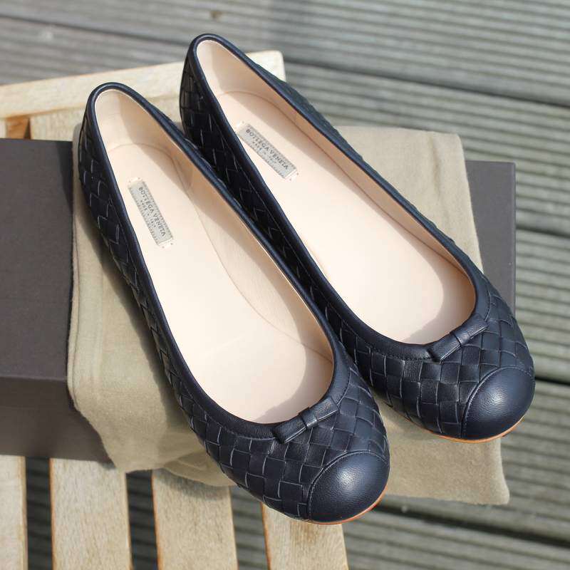 Bottega Veneta BV Shoes Woven Dark Blue Leather Ladies Flats Size 37*