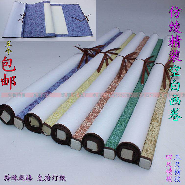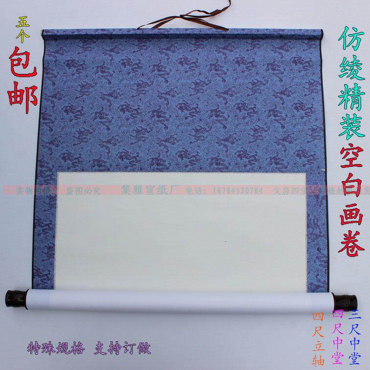 Blank Painting Ordering Three Feet Four Feet Middle Hall Cross Batch Imitation Ayao Paper Blank Drawing Shaft Hanging Shaft Vertical Scroll Banner