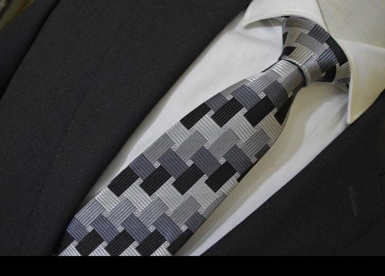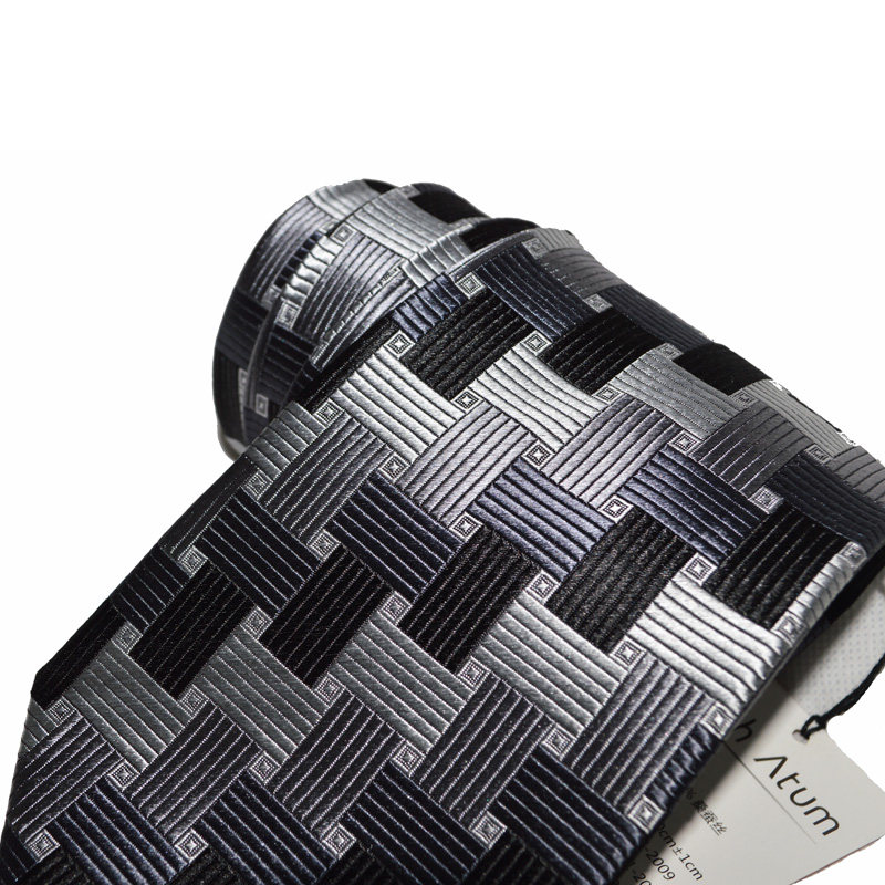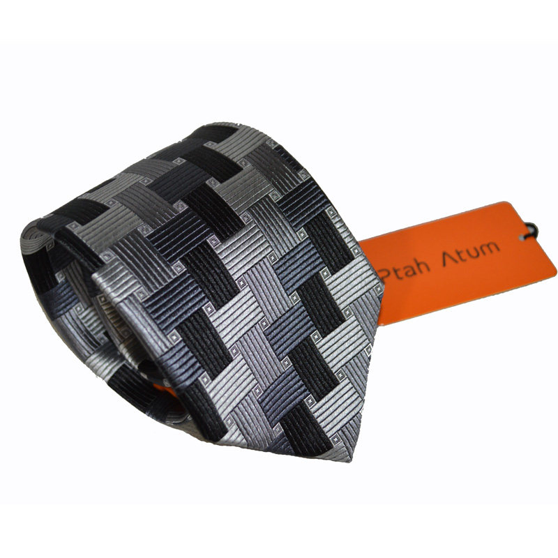 Ptah Atum banquet business style dyed silk tie black white gray silver checkered business tie
