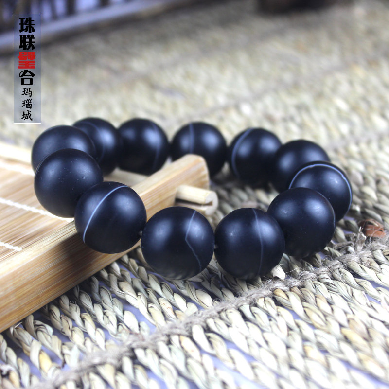 Fuxin Natural Agate Frosted Silk Wrapped Large Men's Hand, Wen Wan, Tibetan-style Crystal Black Bracelet Jewelry