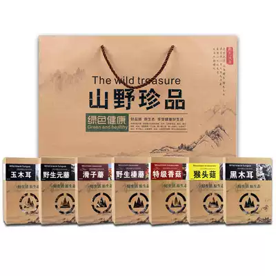 Northeast specialty black fungus, pine mushroom, shiitake mushroom, yuan mushroom, monkey head mushroom, mountain mushroom, dried mushroom, gift box, New Year group purchase