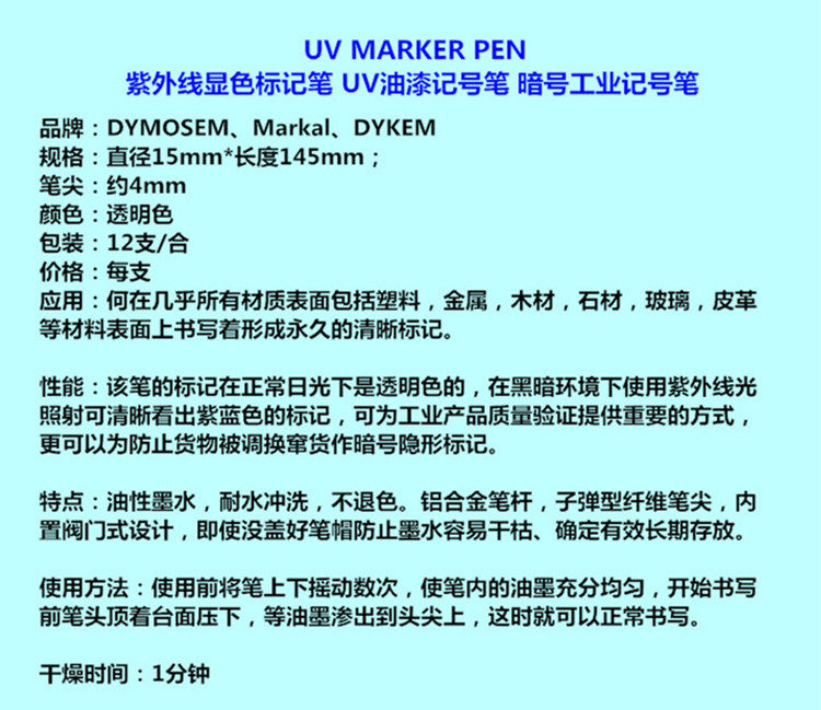 US import DYKEM UV-MARKER UV marker UV marker anti-transfer bag anti-channeling anti-counterfeiting pen