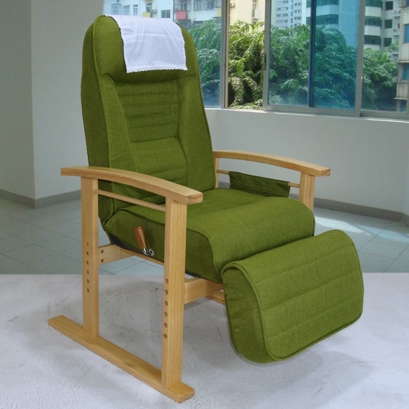 Elderly lazy sofa single folding computer balcony comfortable solid wood armrest high leg backrest reclining beauty chair