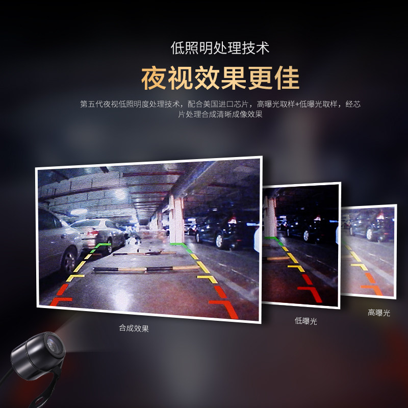 Car front camera, front view blind area, car reversing image, high definition, no distortion, installation, rear view head