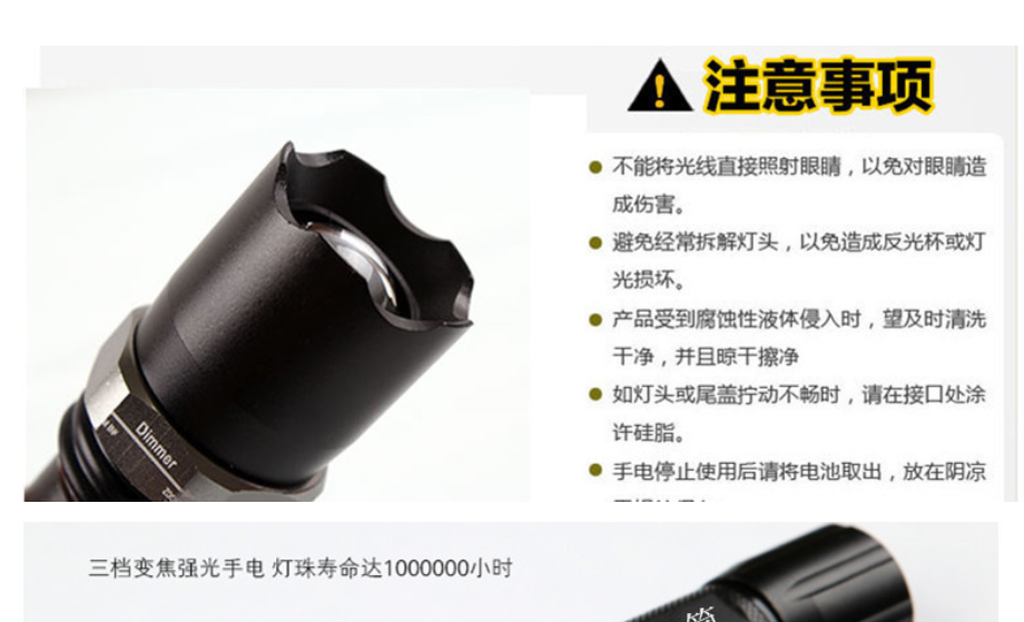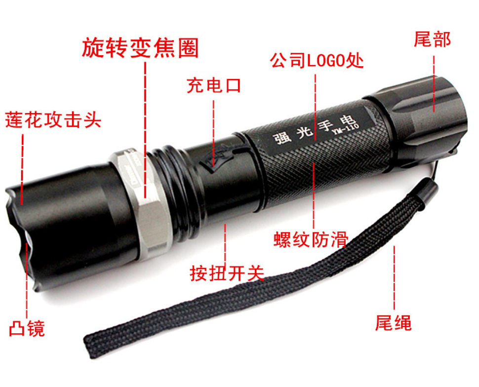 Intense Light Flashlight Home Outdoor Riding Anti-Body LED Charging Far Shot Zoom Flashlight Special Price