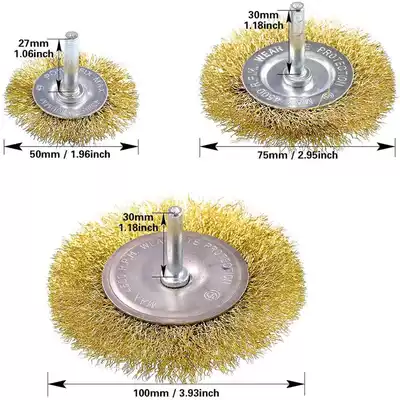 6mm with handle T-type copper-plated steel wire wheel flat wire wheel metal wood polishing rust removal text electric drill wire brush