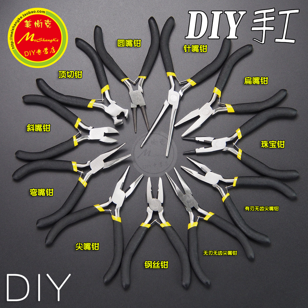 5 inch wire pliers 5 inch oblique mouth pliers 6 inch pointed mouth pliers Wire pliers Pointed mouth pliers Curved mouth pliers Oblique mouth pliers Top cutting pliers Round mouth pliers Needle mouth pliers Flat mouth pliers with blade toothless pointed mouth pliers Yellow and black no blade toothless pointed mouth pliers Yellow and black beads