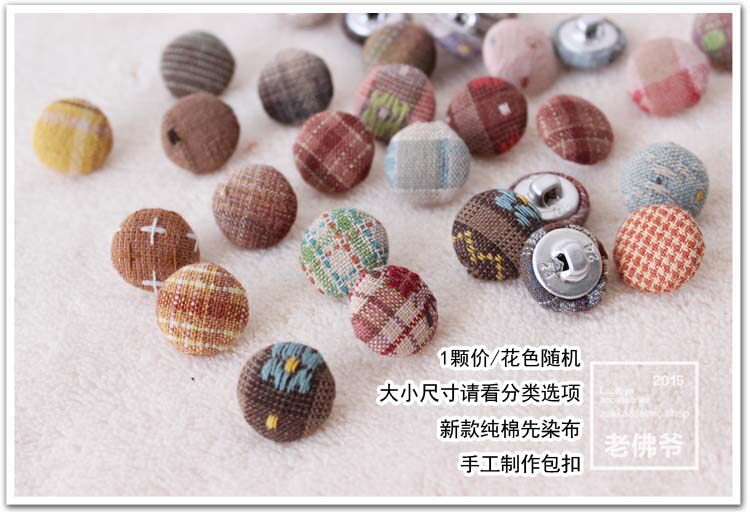 New product handmade with first dyed cloth color textured buttons Idiy Original Design Stripe Round Dot Plaid Bag buckle