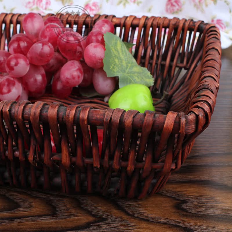 Retro Willow storage basket rattan storage basket hotel display plate bamboo basket rattan supermarket bread basket woven basket