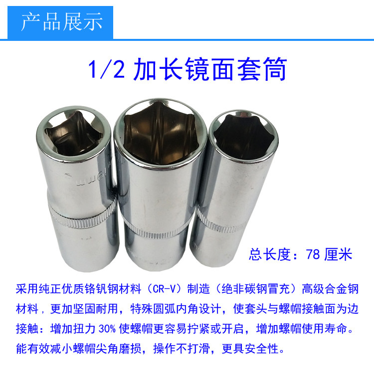Industrial extended 1 2 inch 12 5mm hex socket CR-V mirror casing wrench extended sleeve 8-32mm
