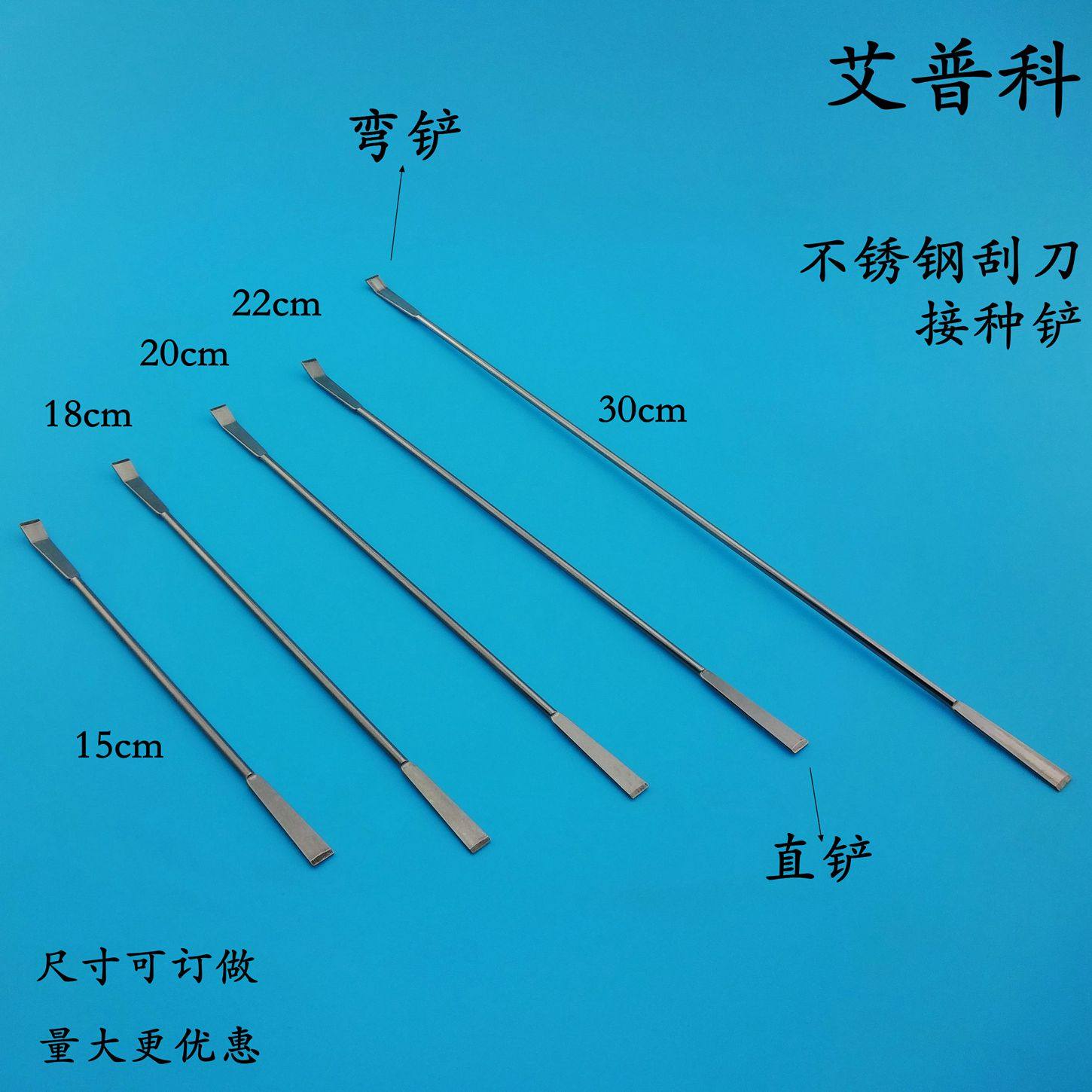 Experimental stainless steel medicine scraper scraper shovel inoculation shovel U spoon flat head shovel curved shovel micro medicine spoon 22cm30cm spoon