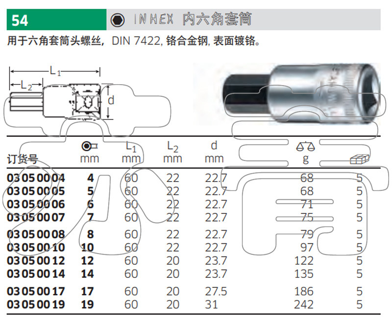 4mm(03 05 00 04)5mm(03 05 00 05)6mm(03 05 00 06)7mm(03 05 00 07)8mm(03 05 00 08)10mm(03 05 00 10)11mm12mm(03 05 00 12)14mm(03 05 00 14)17mm(03 05 00 17)19mm(03 05 00 19)