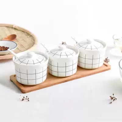 Japanese ceramic seasoning jar seasoning box set seasoning jar box creative salt jars household kitchen utensils