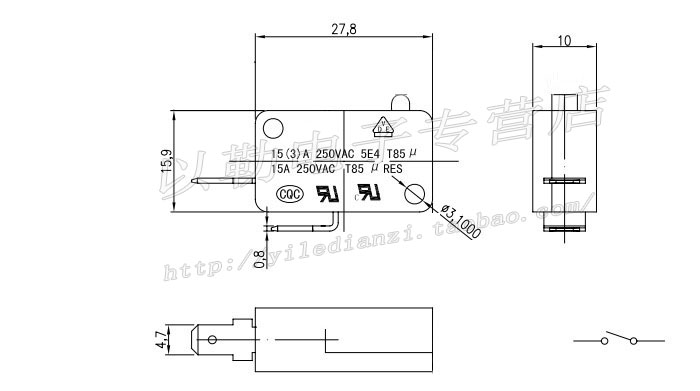 High quality micro switch 2 feet normally open press-on reset button switch electric heater stroke switch copper foot