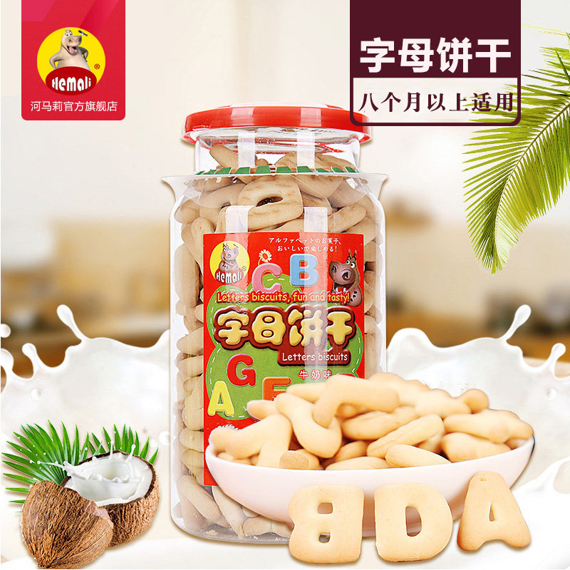River Mali Alphabet Cookies Casual Office Zero Food Snack Pastry Finger Pie Milk Coconut Taste 190g