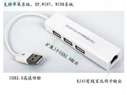 USB LAN USB three-port HUB 2-in-2 0USB network card HUB micro usb route interface