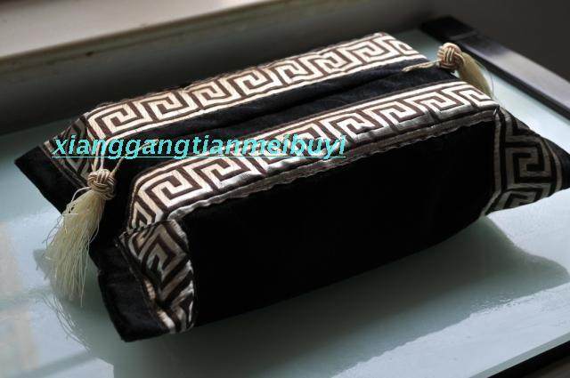 Modern light luxury black velvet embroidery edge toilet paper box creative car European-style tissue box set home Chinese-style tissue set
