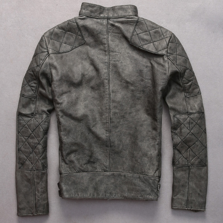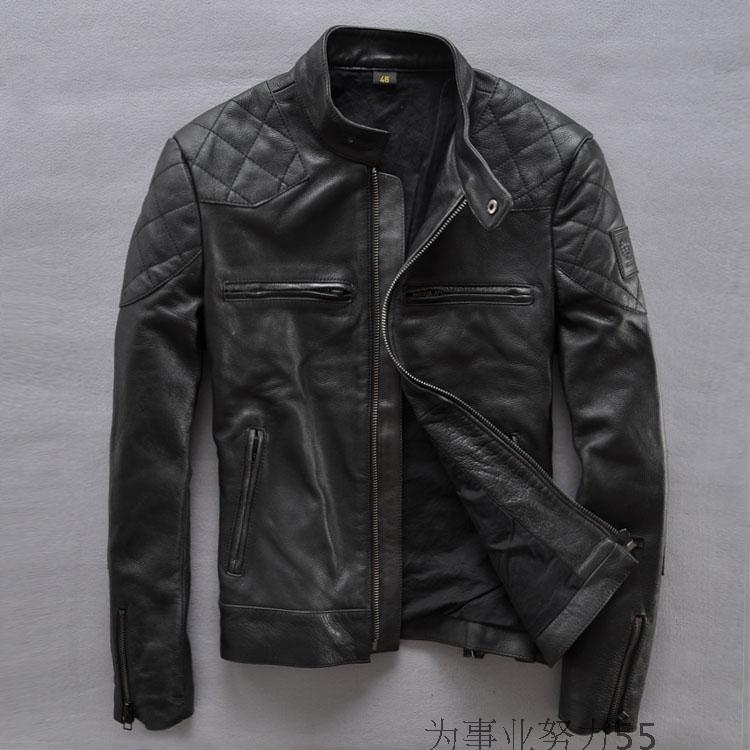 Beckham same style old top layer cowhide stand collar motorcycle suit leather jacket men's leather jacket slim-fit men's coat