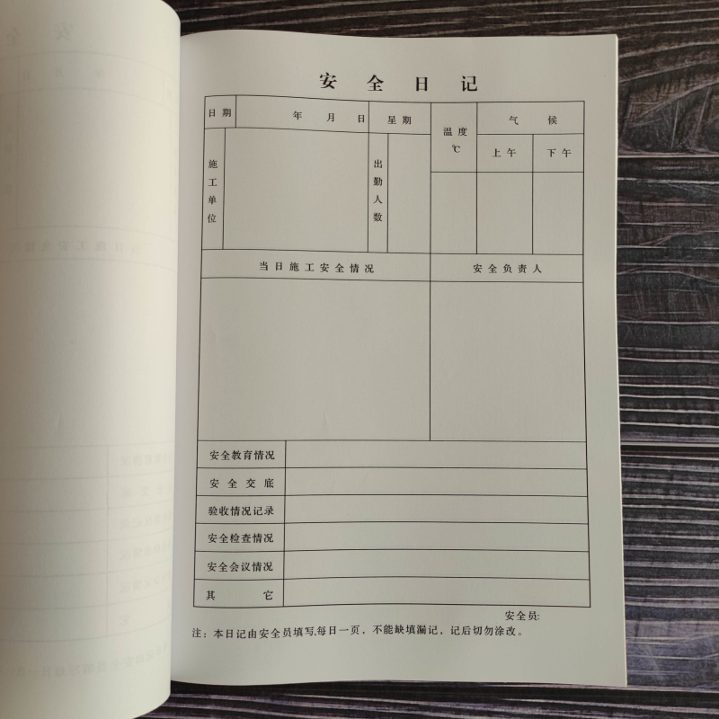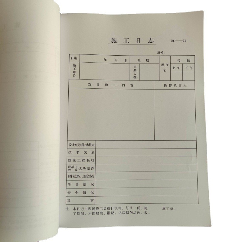 Construction log 16K construction unit climate temperature record book A4 building safety management data safety diary