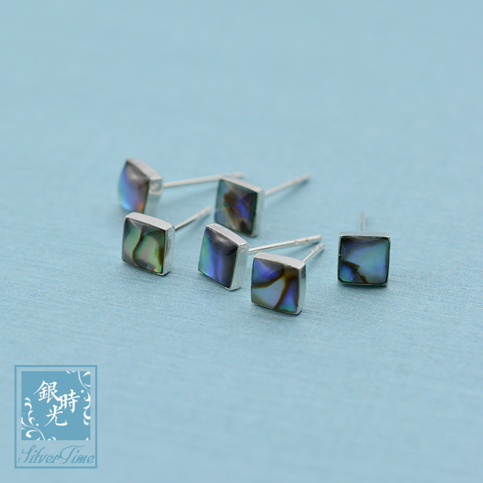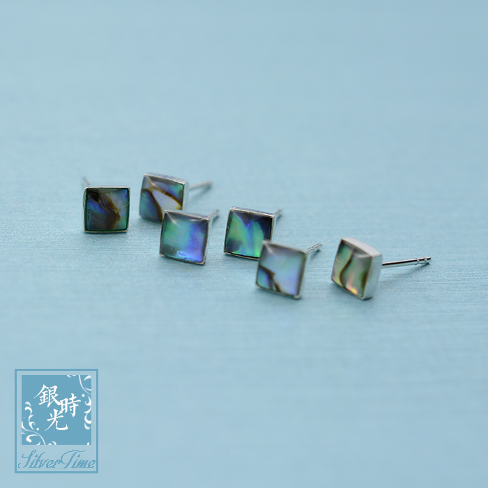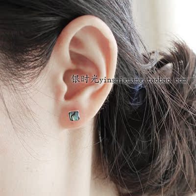 Silver time S925 pure silver earshot mini square natural color seashells baubex earrings for men and women fashion earrings