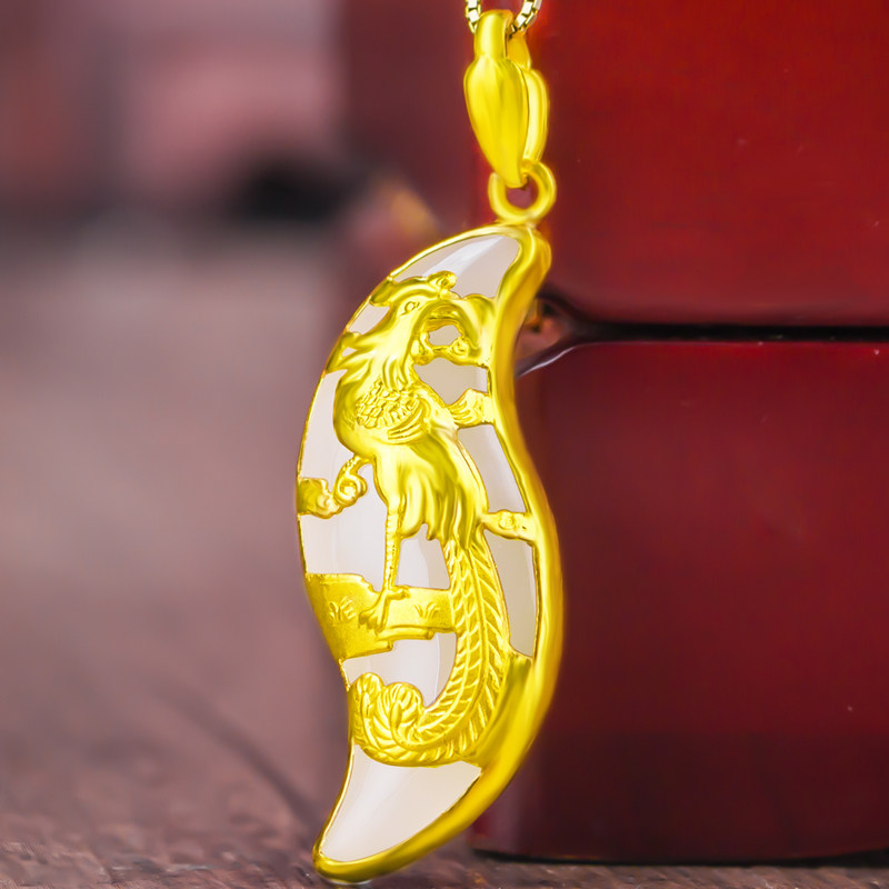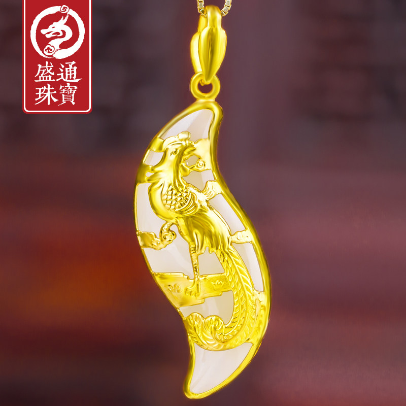 Sheng Tong Jewelry Gold Inlaid Jade Pendant and Tian Baiyu Longfeng woman's money pendant gold and gold jewelry