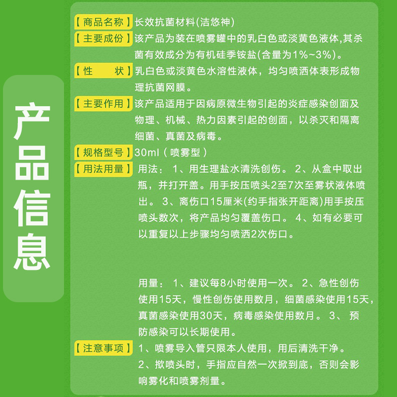 Jieyoushen juc long-acting antibacterial material spray 30ml physical antibacterial anti-inflammatory fungal virus sterilization