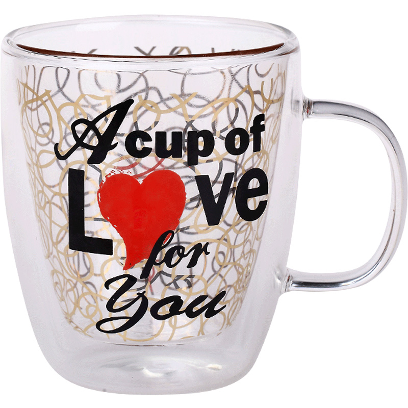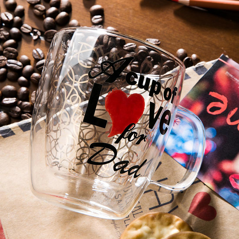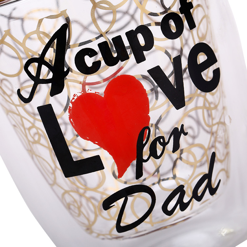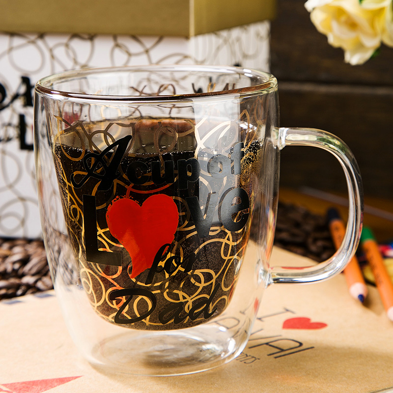 Love house Green creative printed high temperature resistant office water glass with handle cup anti-burn and heat resistant double glass cup