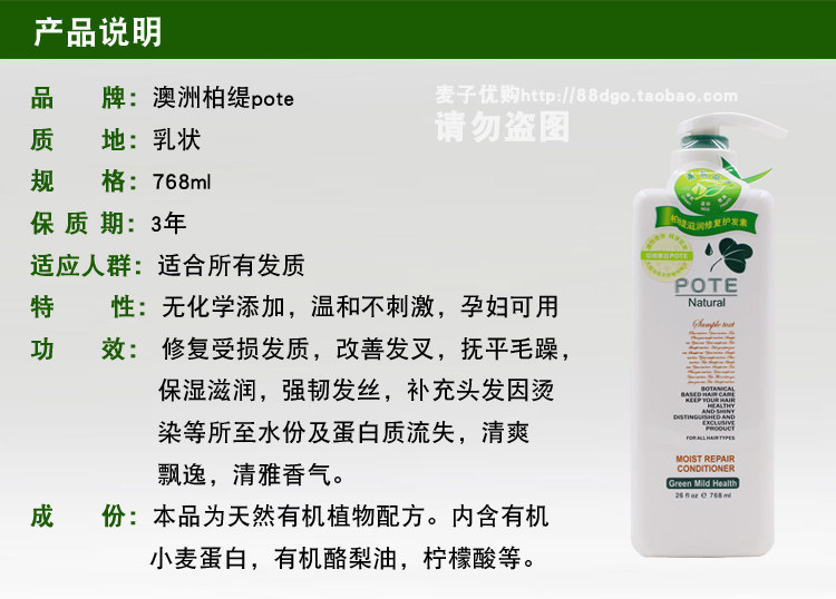 Australia pote Moisturizing and supple conditioner Dry frizz perm damage repair 768ml Pregnant women can be used