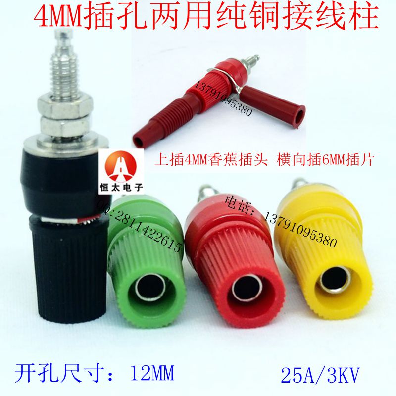 4MM jack pure copper 25A 3KV high current terminal drilling 12MM panel socket banana socket terminal