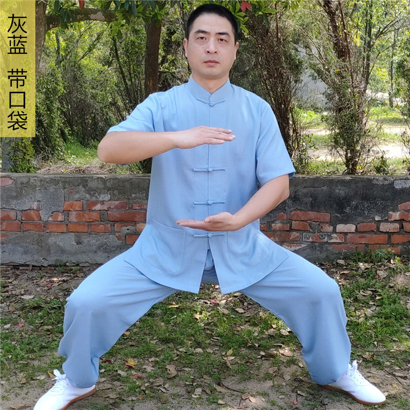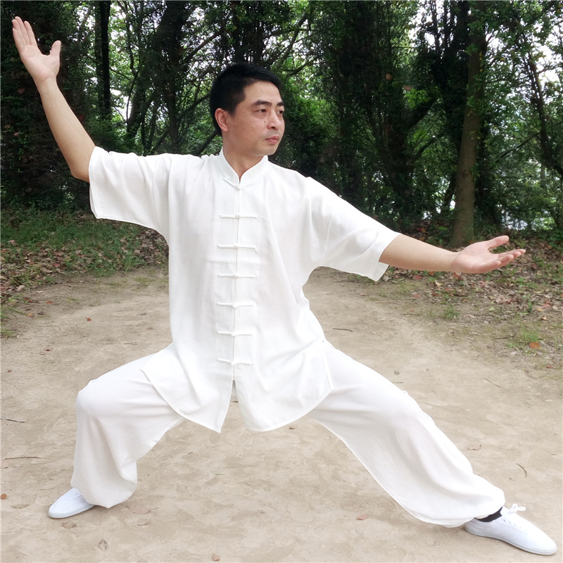 Summer Short Sleeves Taiji Taiji Fist Cotton Cotton Cotton Cotton Cotton Cotton Cotton Costume Costume Costume Costume Costume Costume Set Men and Women in Middle Age and Old in Summer White