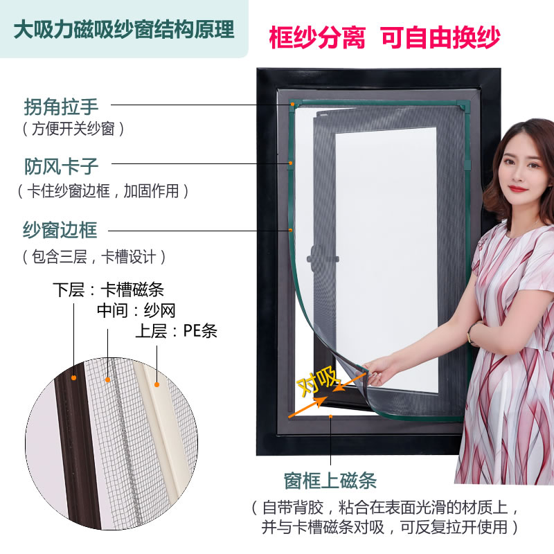 Magnetic anti-mosquito screen window punch-free summer invisible screen window screen magnet self-adhesive simple dust-proof household screen window screen screen