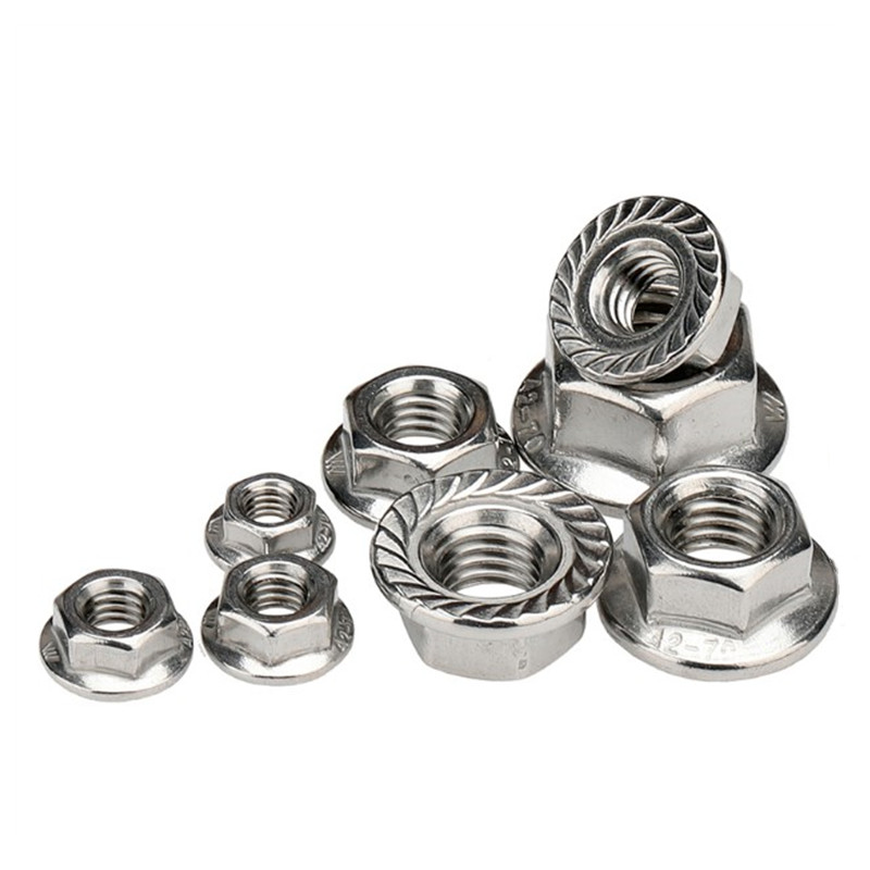 201304 stainless steel flange nut GB6177 with cushion point teeth non-slip nut M34568-M12 14 20