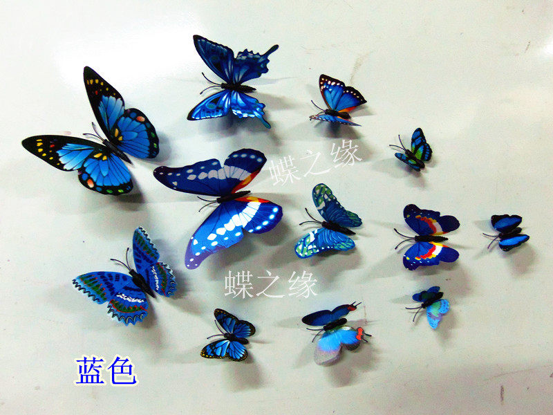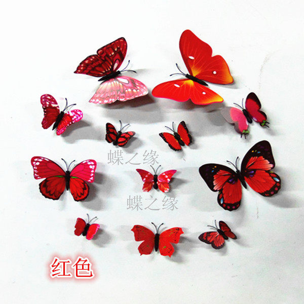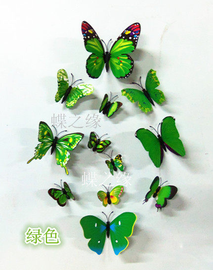 Set of 12 sets of color simulation three-dimensional butterfly 3D plastic pvc magnetic refrigerator wall stickers