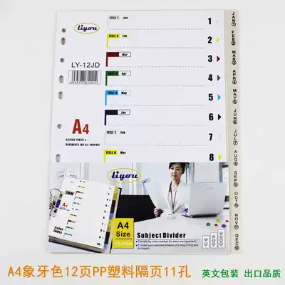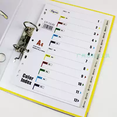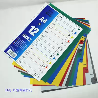 A4 Loose-leaf 12-page index paper 12-page color paging paper PP plastic spacer paper classification paper 11 holes English version