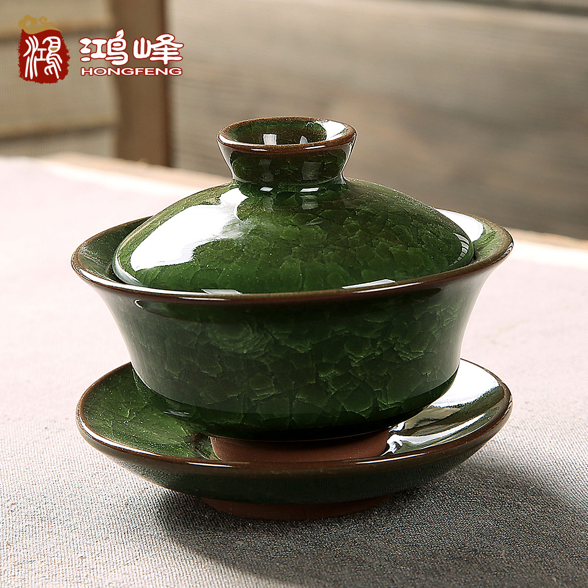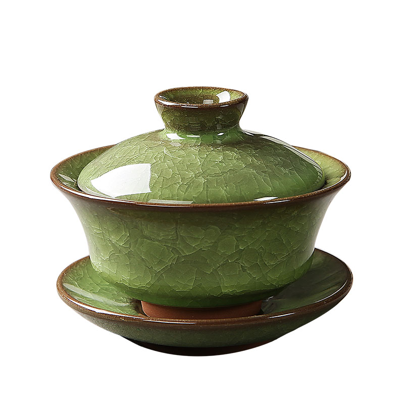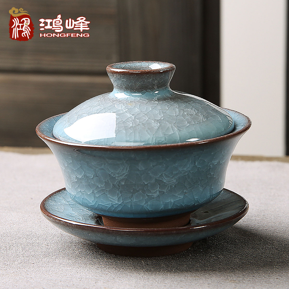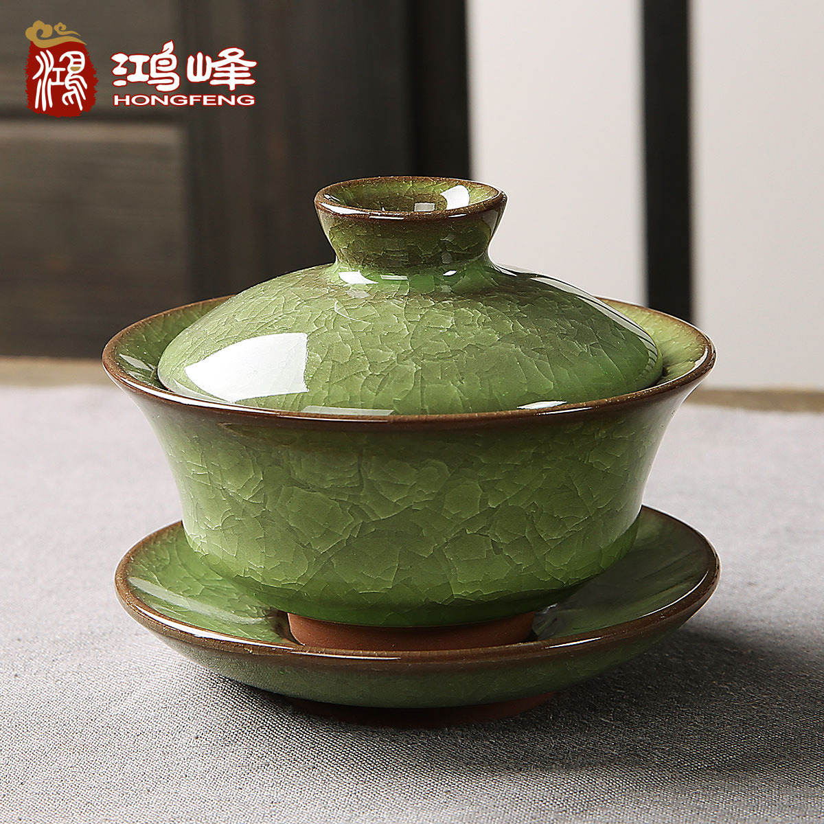 Ice cracked glazed tea bowl Sancai cover bowl tea cup single large with lid small ceramic kung fu tea set for household use