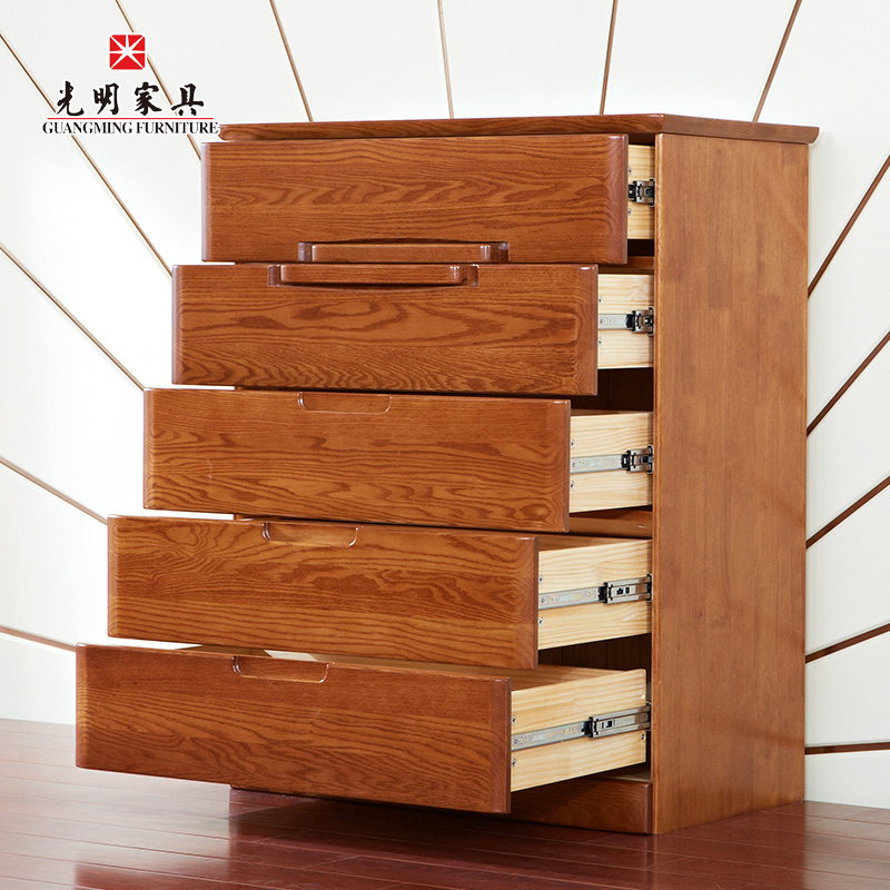 Bright furniture modern Chinese style all solid wood chest of drawers red oak furniture bedroom simple chest of drawers chest of drawers