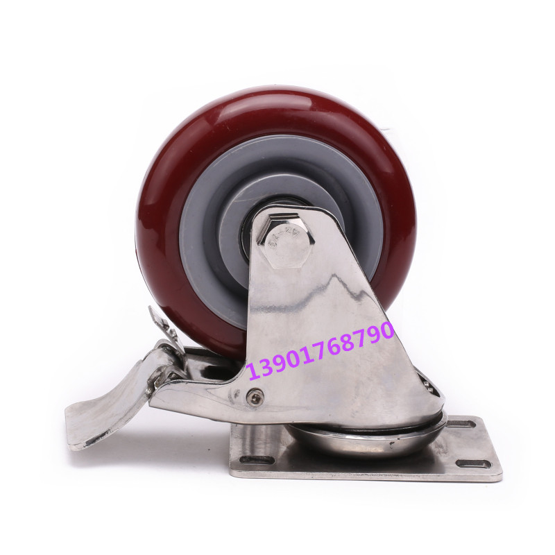 304 stainless steel 3 inch heavy-duty biaxial polyurethane universal wheel brake wheel orientated industrial trolley wheel wheel