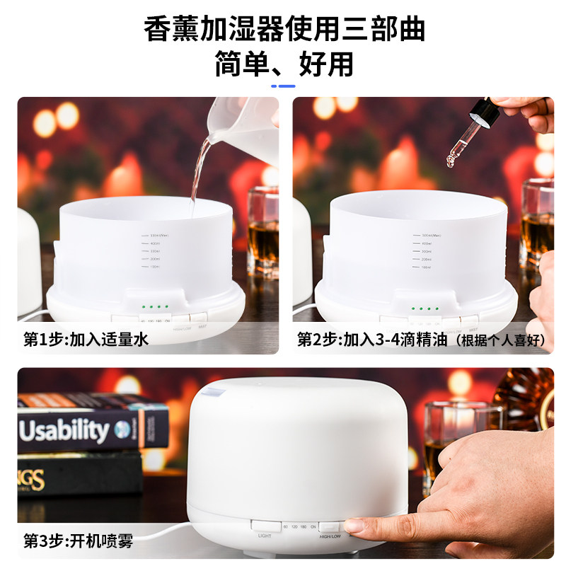 Warm light single machine 600ML 2 bottles of 20ML essential oil (three months dosage)