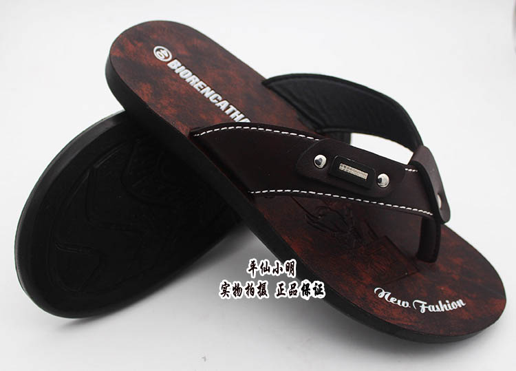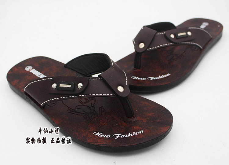 Imported Vietnamese shoes men's flip-flops PU leather casual fashion slippers soft rubber sole