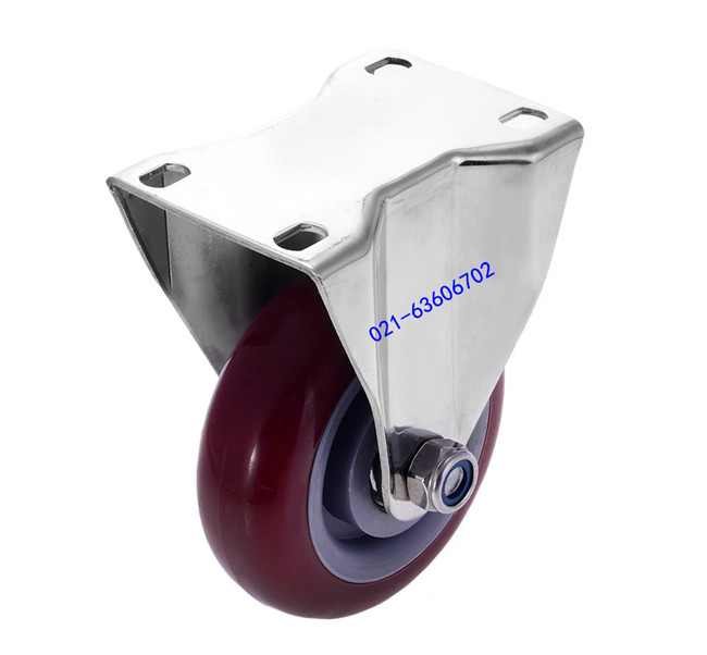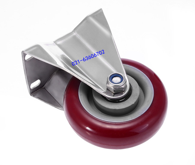304 stainless steel 4 inch flat heavy duty dual axle polyurethane industrial universal wheel brake fixed caster wheel