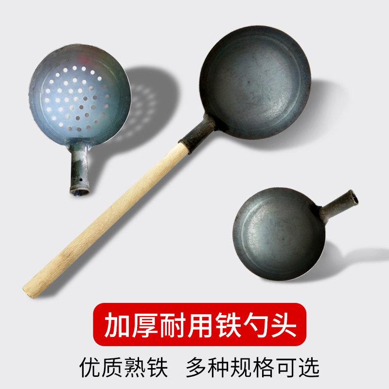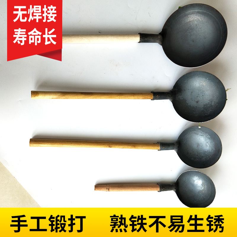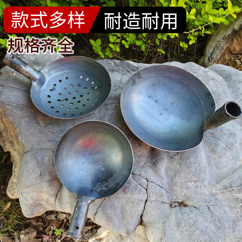 Steel handle iron spoon Colander Iron scoop Large iron spoon Outdoor pot Clean sewer silt Dig dirt dig dung spoon Gray spoon
