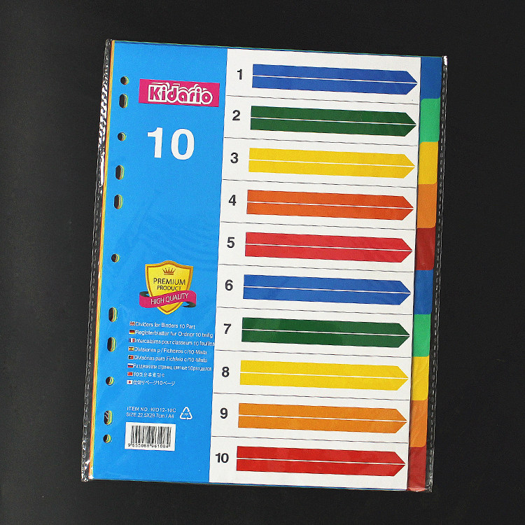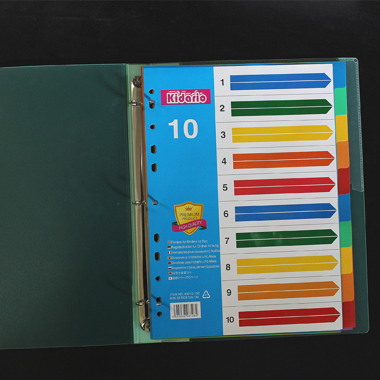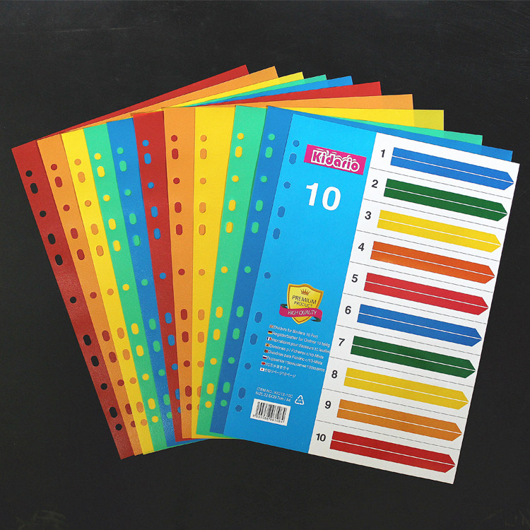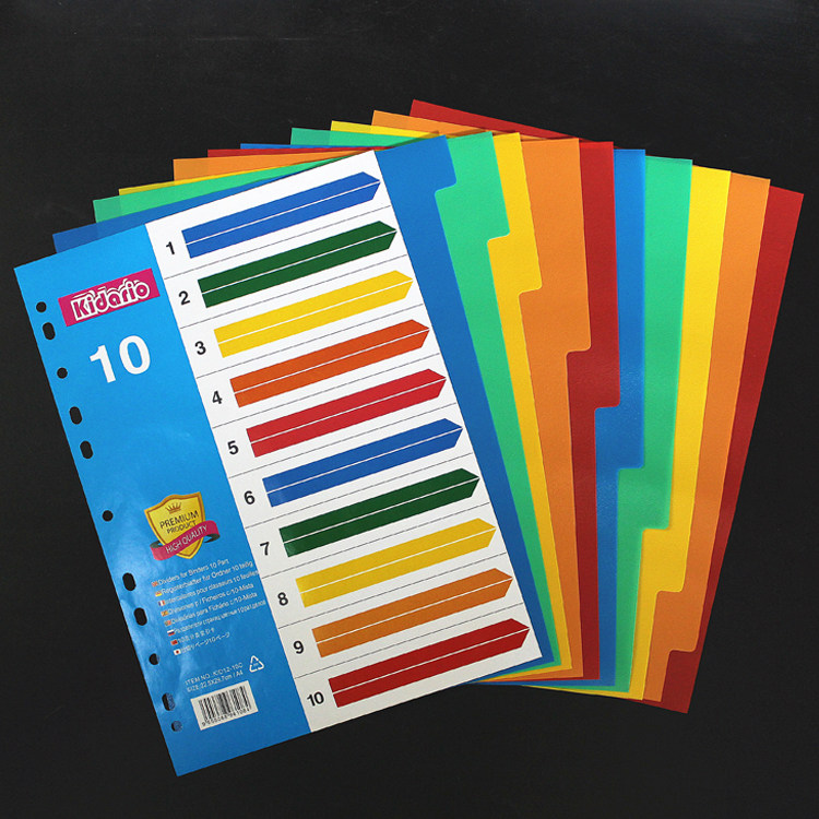A4 loose leaf index paper sorting paper 10 pages color dividing paper PP plastic partition paper sorting page 11 holes English version