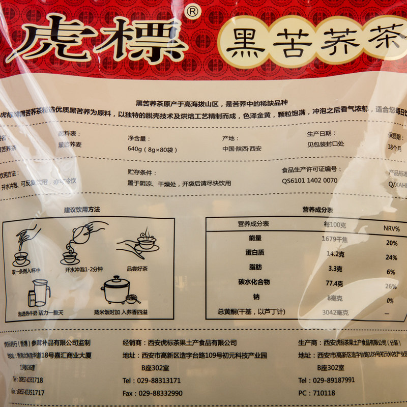 Tiger label black tartary buckwheat tea 640g 80 sachets whole grain black tartary buckwheat tea buckwheat tea