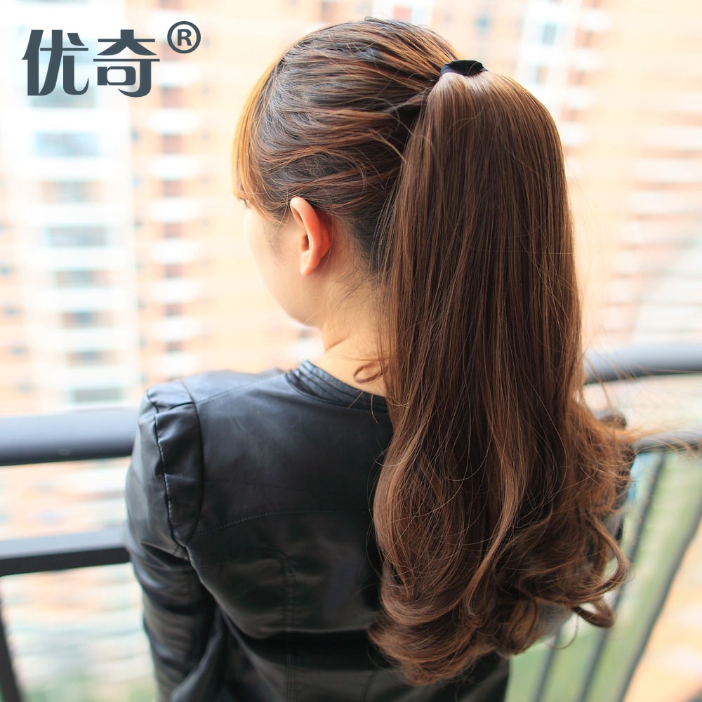 Wig ponytail short pear flower real ponytail wig female real hair high and long curly hair big wave strap fake braid