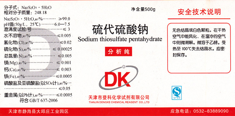 Sodium thiosulfate AR500g soda analytical pure Haibo chemical raw materials chemical reagent experimental supplies promotion