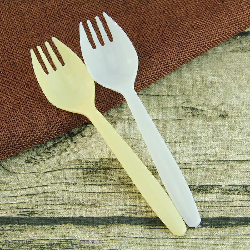 Disposable fork spoon fork spoon integrated cake fork spoon rice spoon thick yellow white whole box