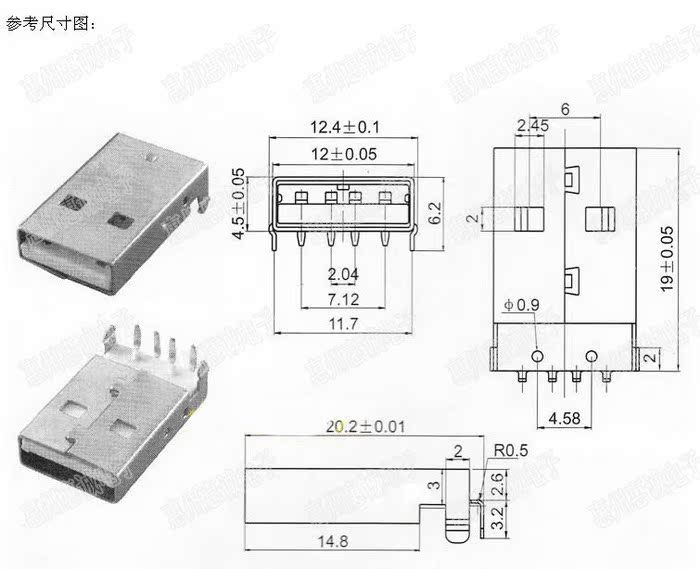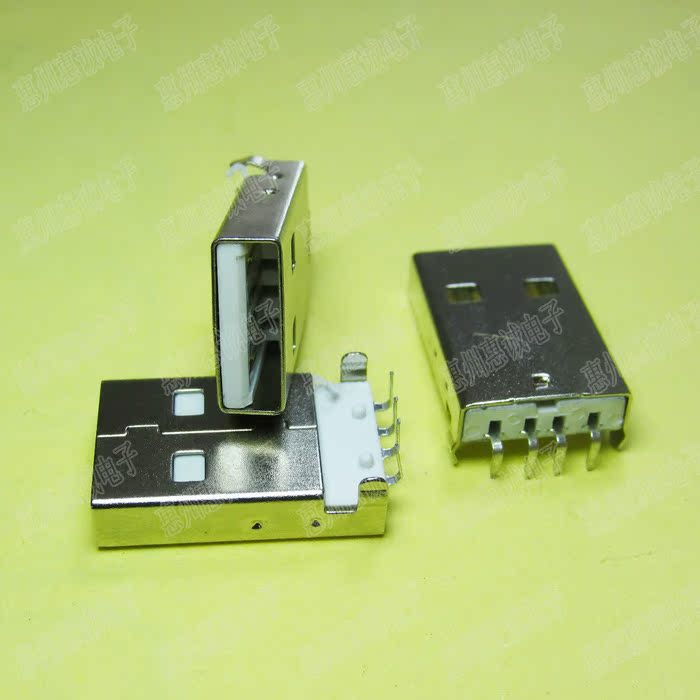 White USB-A male head USB plug 90-degree foot welding in-line USB socket